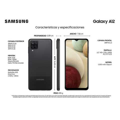 Samsung galaxy a12 android smartphone. Features 6.5″ display, mt6765 helio p35 chipset, 5000 mah battery, 128 gb storage, 6 gb ram. The samsung galaxy a12 is an android smartphone manufactured by samsung electronics. The phone was announced in november 2020 as a successor to the samsung galaxy a11.